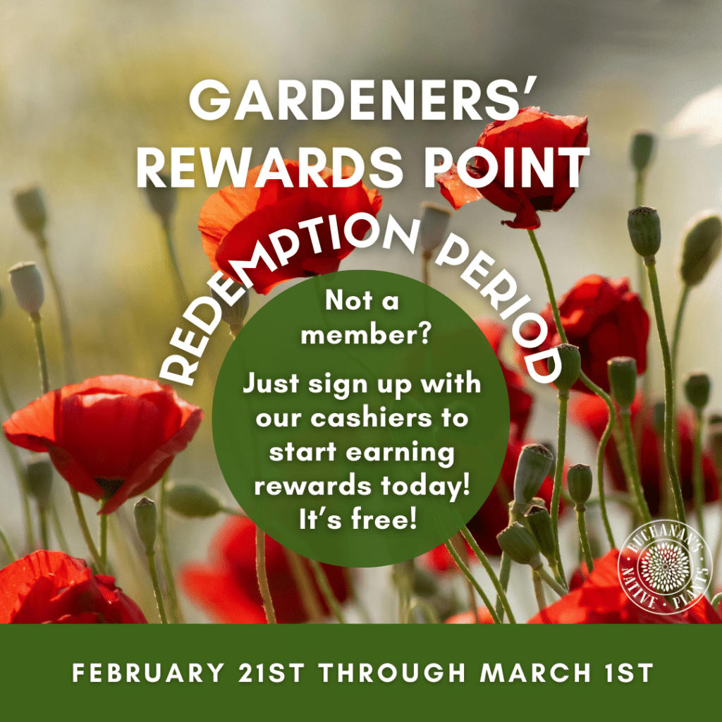 Earn $1 point for every $30 purchase. Redeem points for up to 50% of your purchase during special redemption periods. Receive our weekly email newsletter with gardening tips and info on specials and events. Nothing to carry or remember — we can quickly look you up! And points don’t expire.